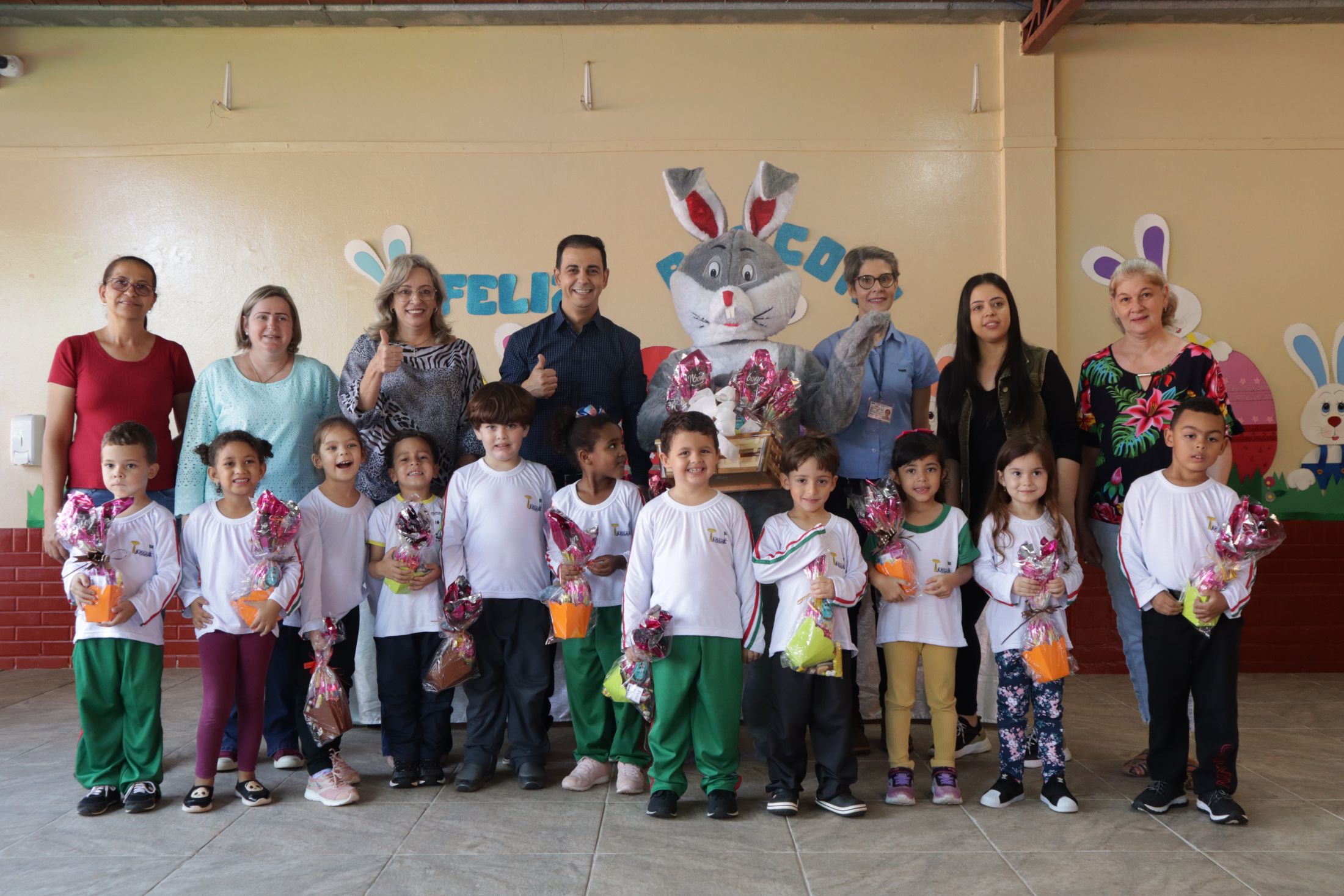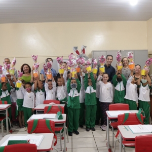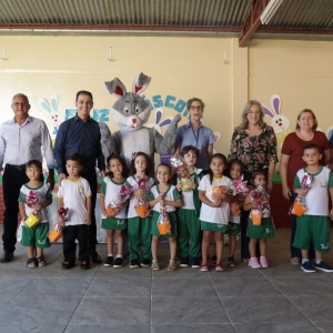 Nesta última quinta-feira (14), aconteceu a entrega dos kits de páscoa para todos os alunos da Rede Municipal de Ensino de Jussara, Escola Julita Alves Soares, CMEI Balão Mágico e o CMEI Sonho de Criança, ação essa patrocinada pela grande parceira da Administração municipal a empresa Companhia Melhoramentos Norte do Paraná - CMNP.