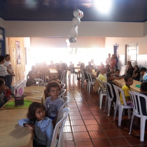 As crianças do SCFV foram recebidas com muito carinho com clima da páscoa, além de um delicioso lanche preparado especialmente para eles, as crianças receberam a visita do coelhinho da páscoa.