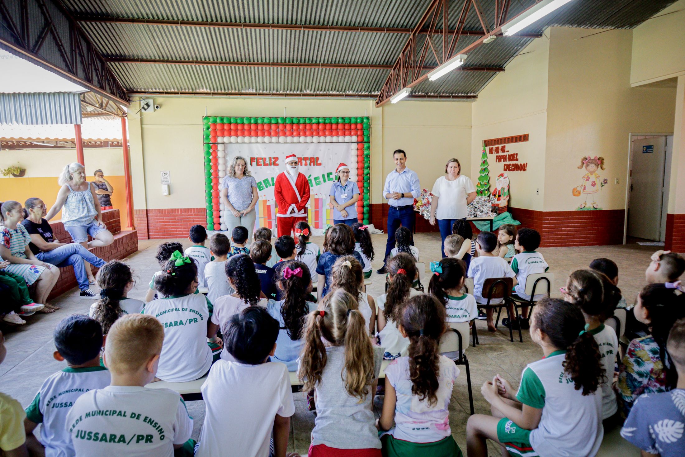 No dia 15 de dezembro, a Prefeitura Municipal de Jussara, por meio da Secretaria de Educação, Cultura e Turismo, divulgou mais uma nobre ação social de Natal da empresa Companhia Melhoramentos Norte do Paraná - CMNP nas escolas da rede Municipal de Ensino, onde foi entregue aproximadamente cerca de 700 brinquedos, fazendo a alegria das nossas crianças.