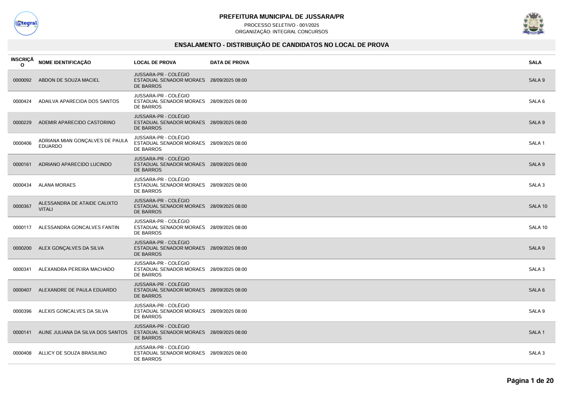 A Prefeitura Municipal de Jussara, em conjunto com a Integral Concursos, divulga o Ensalamento – Distribuição dos Candidatos nos Locais de Prova referente ao Processo Seletivo Edital nº 001/2025.